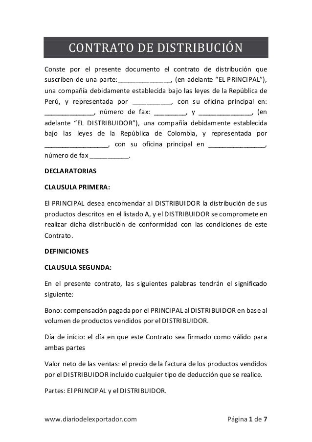 El contrato de concesin o distribucin comercial internacional. MODELO DE CONTRATO DE DISTRIBUCIN INTERNACIONAL Descargue ejemplo de Contrato de Distribucin Internacional en formato Word. El contrato que esta documentacin sea objeto de envo a los clientes finales.