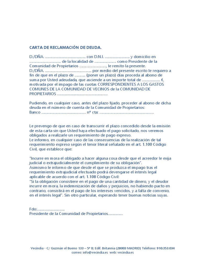 Modelo De Reclamacion De Deuda Para Comunidad De Propietarios