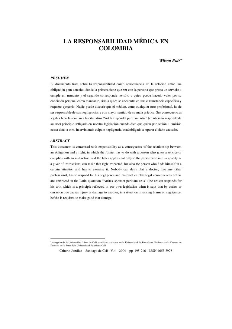 La Responsabilidad Medica En Colombia Iafjsr