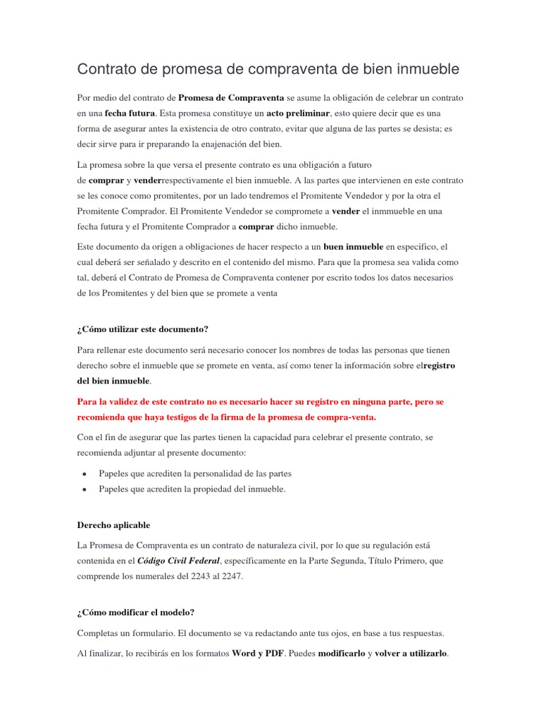 Contrato De Promesa De Venta Que Celebran Por Una Parte La Sucesion Del Senor Representada Por Su Albacea Senor Pdf Free Download