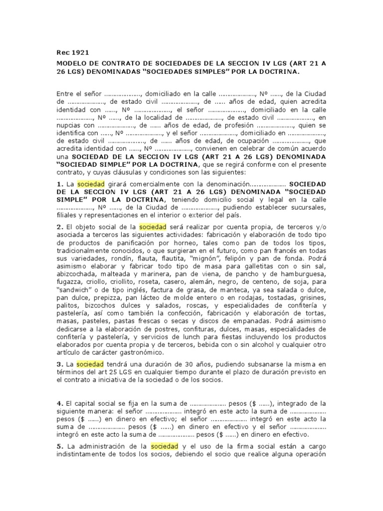 Comn acuerdo la constituyen en este acto conforme a las siguientes. Un modelo de contrato de sociedad civil es una herramienta muy til como punto de partida o inspiracin pero siempre debers acabarlo con un profesional. NOMBRE O DENOMINACIN SOCIEDAD CIVIL.