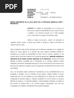 Informe Escrito De Divorcio Divorcio Matrimonio