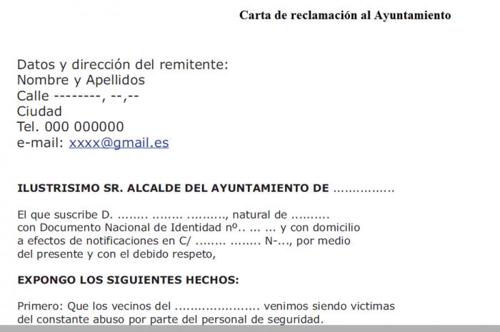 Modelo De Cartade Reclamacion Al Ayuntamiento